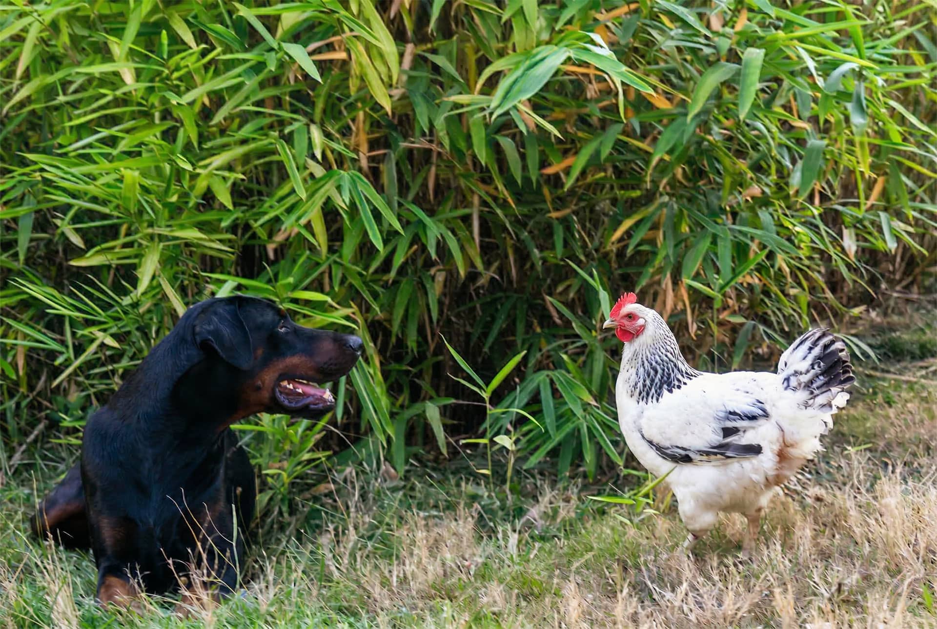 Tyson s’entend très bien avec les adultes comme avec les enfants. Il vit au milieu des poules, des oies et des canards et a pour meilleure amie Abye, une petite chienne d’1,2 kg.
